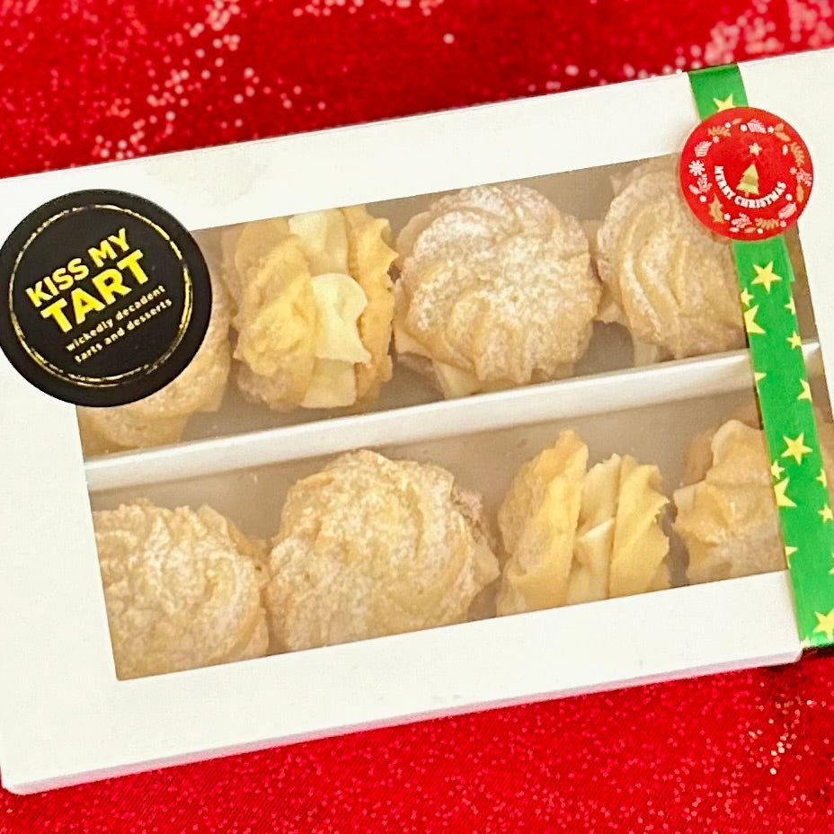 A classic melt-in-the-mouth buttery biscuit sandwiched with a fluffy lemon buttercream filling (made with real butter). Perfect as part of a morning or afternoon tea. A box of eight melting moments ready to enjoy or to gift to someone special.